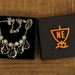 The necklace was inspired by an original find from Gotland, Sweden. This jewel is an elegant combination of natural Onyx and Sterling Silver.