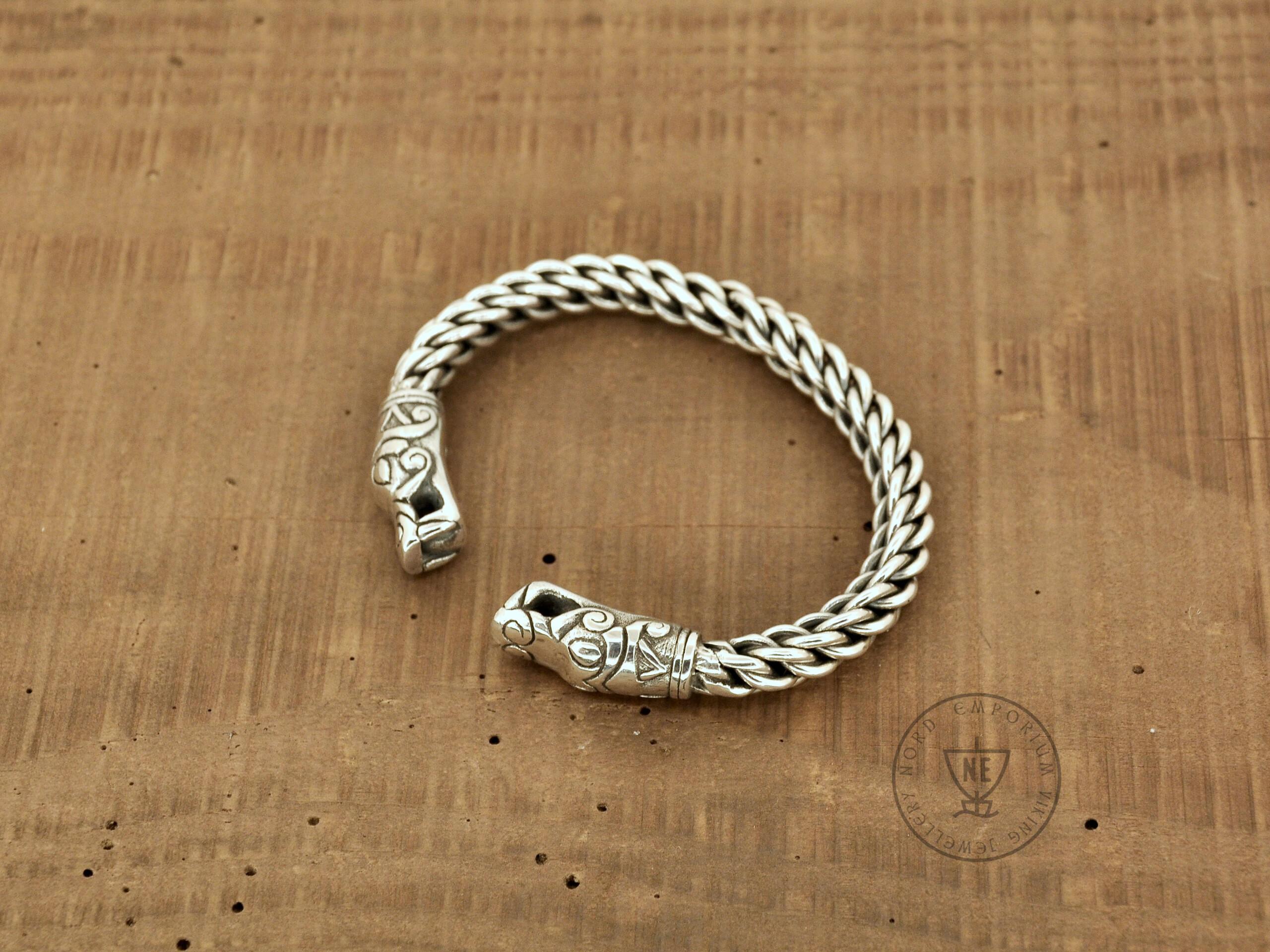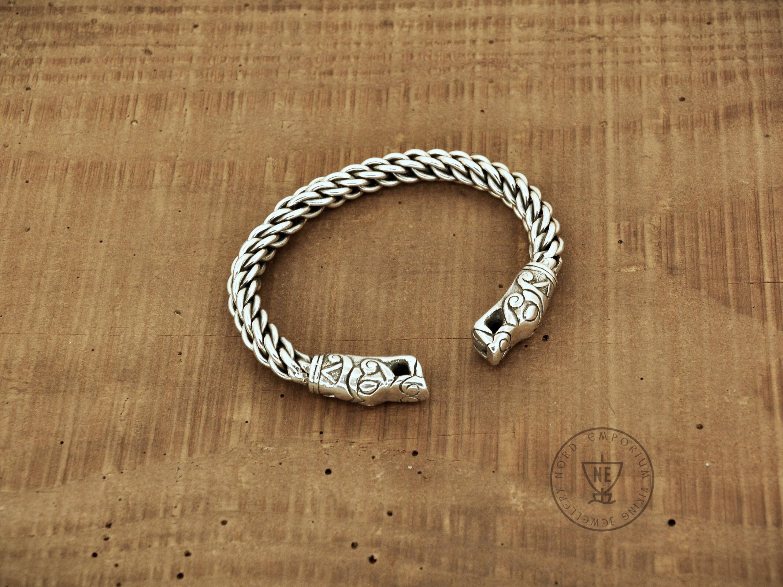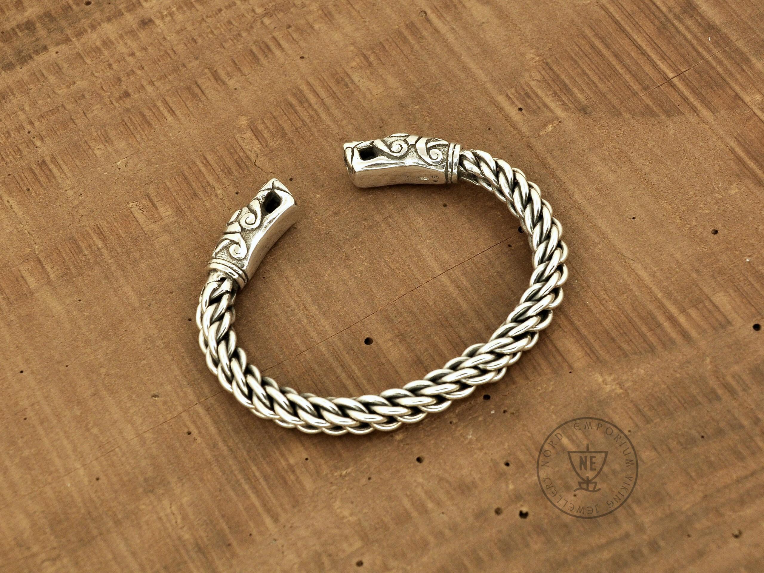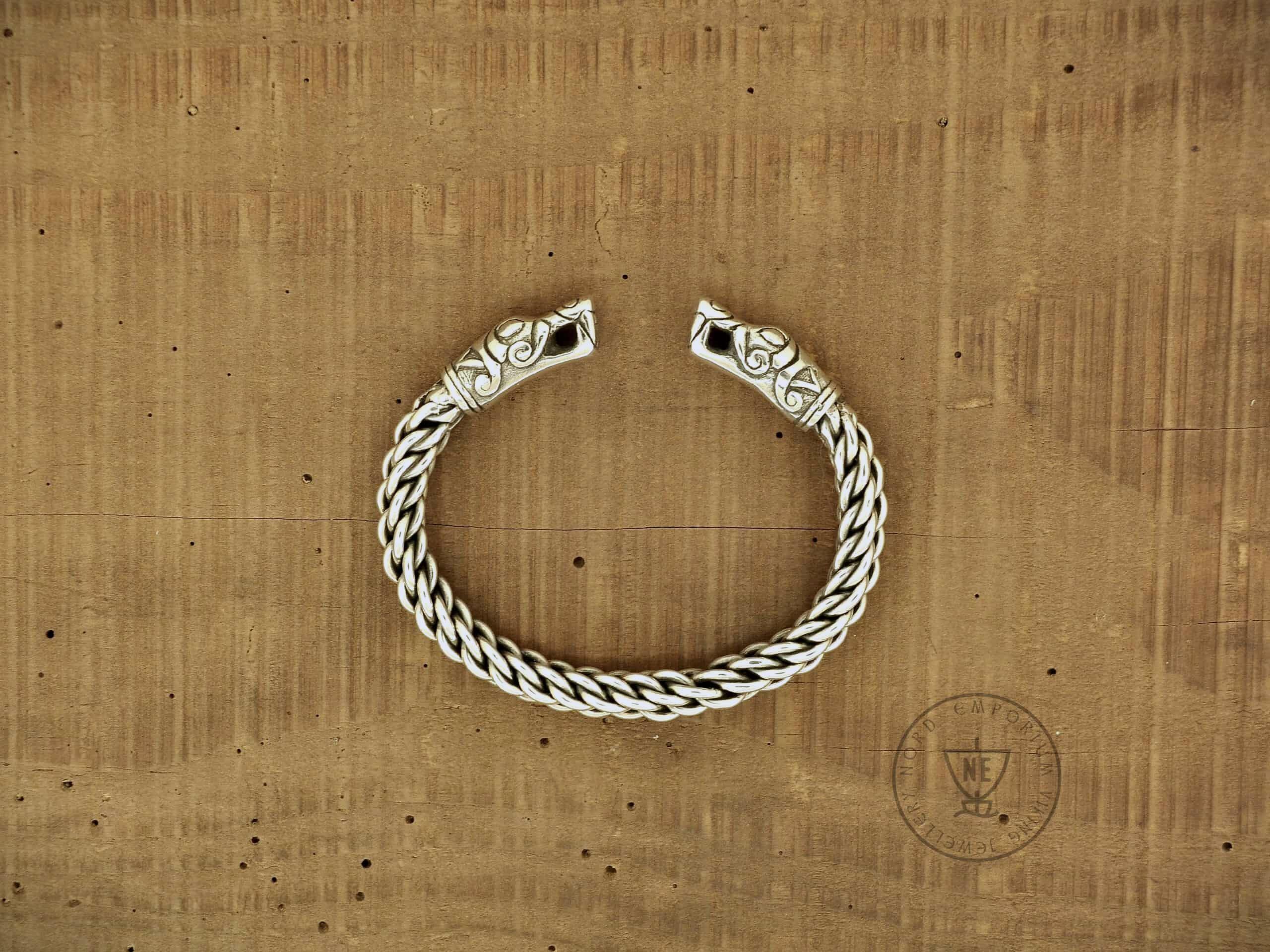 The body of the arm ring is hand-braided, and the dragon heads are cast. The body of the bracelet is made of Fine Silver 999. The dragon heads are made of Sterling Silver 925.