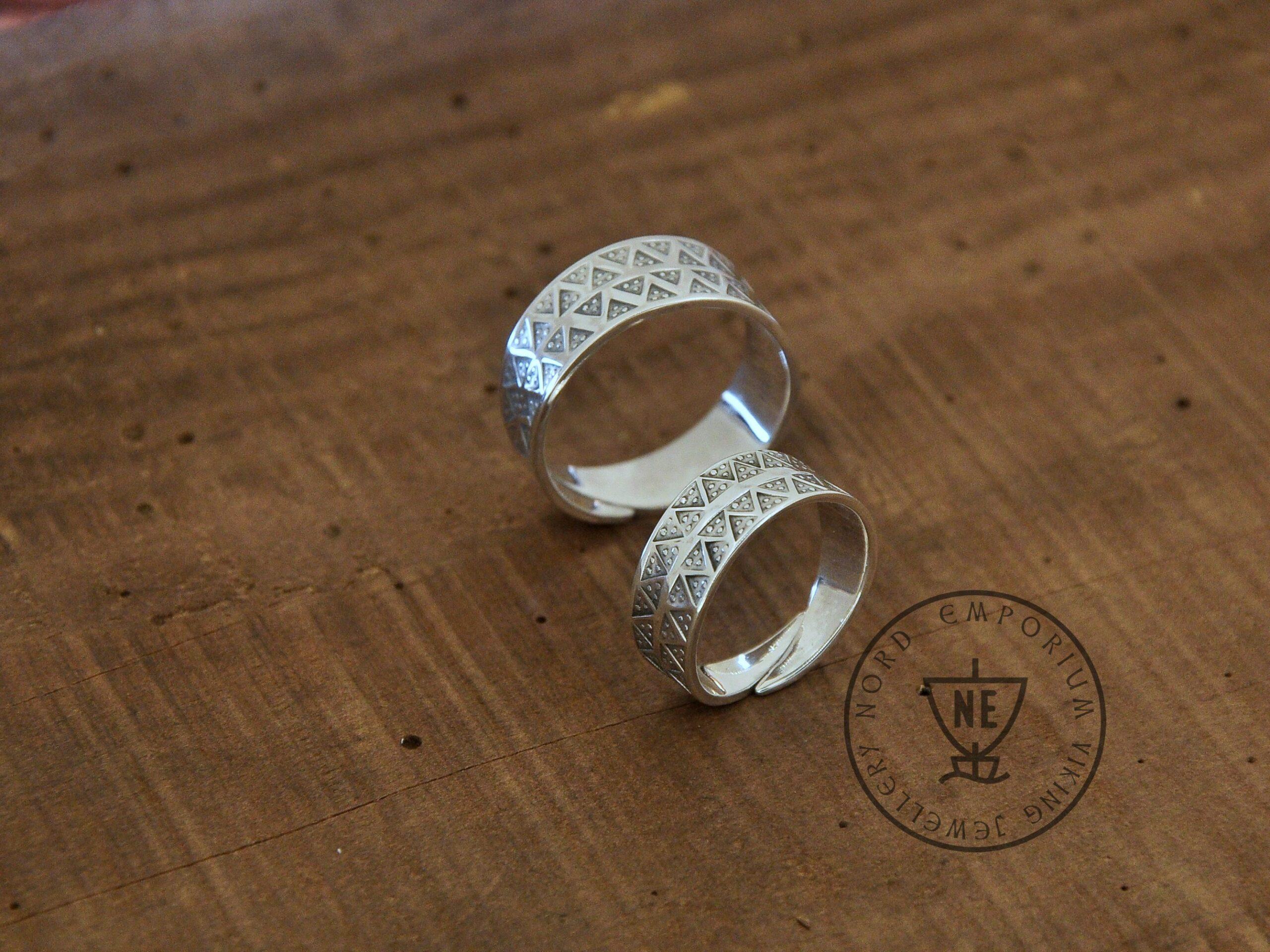 Traditional hand-stamped Viking Rings. Made of Sterling Silver and oxidised in the crevices. The rings are based on the historical find from Truso, Poland.