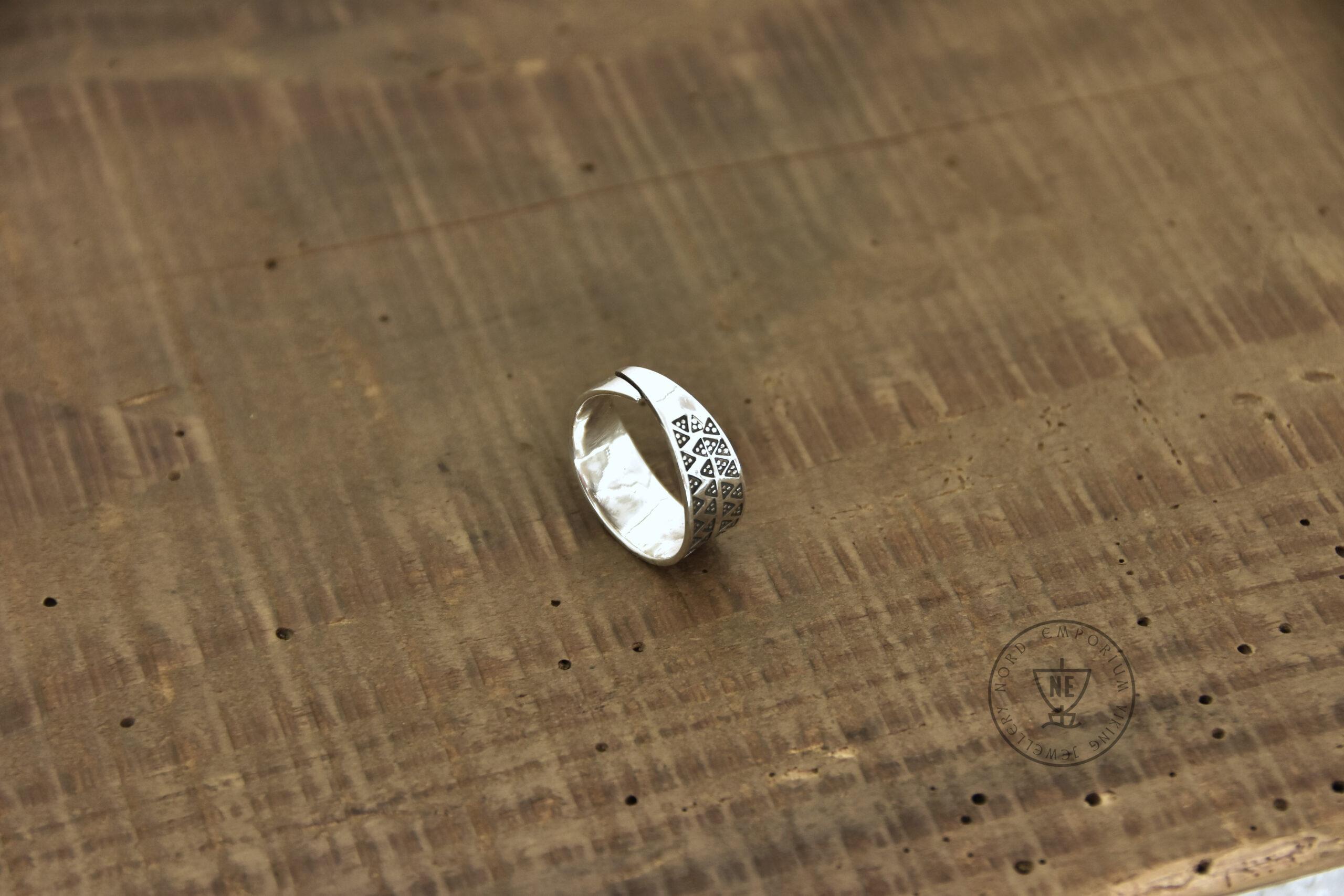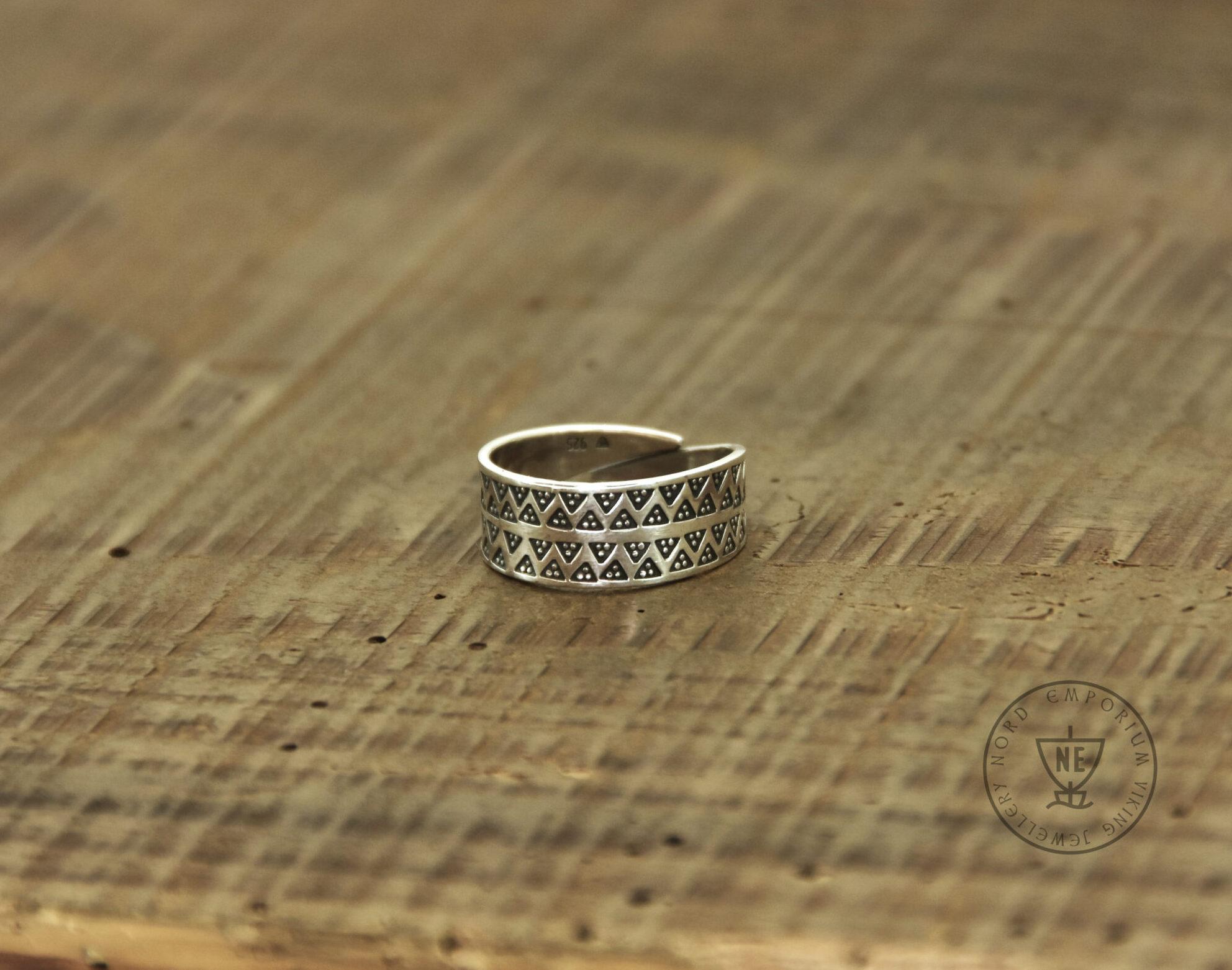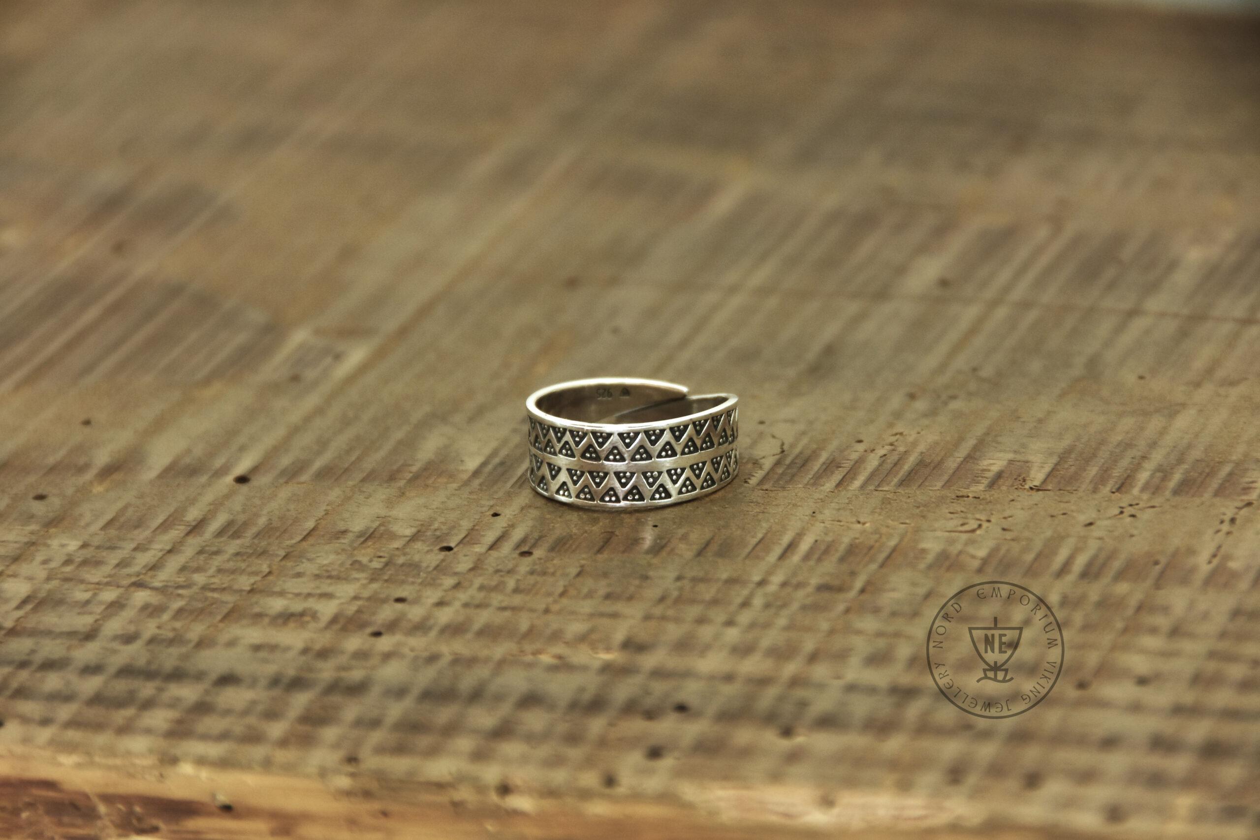 Traditional hand-stamped Viking Ring. Made of Sterling Silver and oxidised in the crevices. The ring is based on a historical find from Truso, Poland.