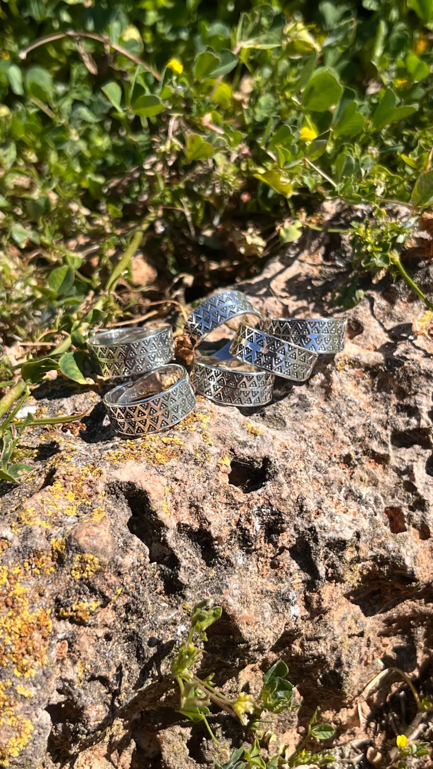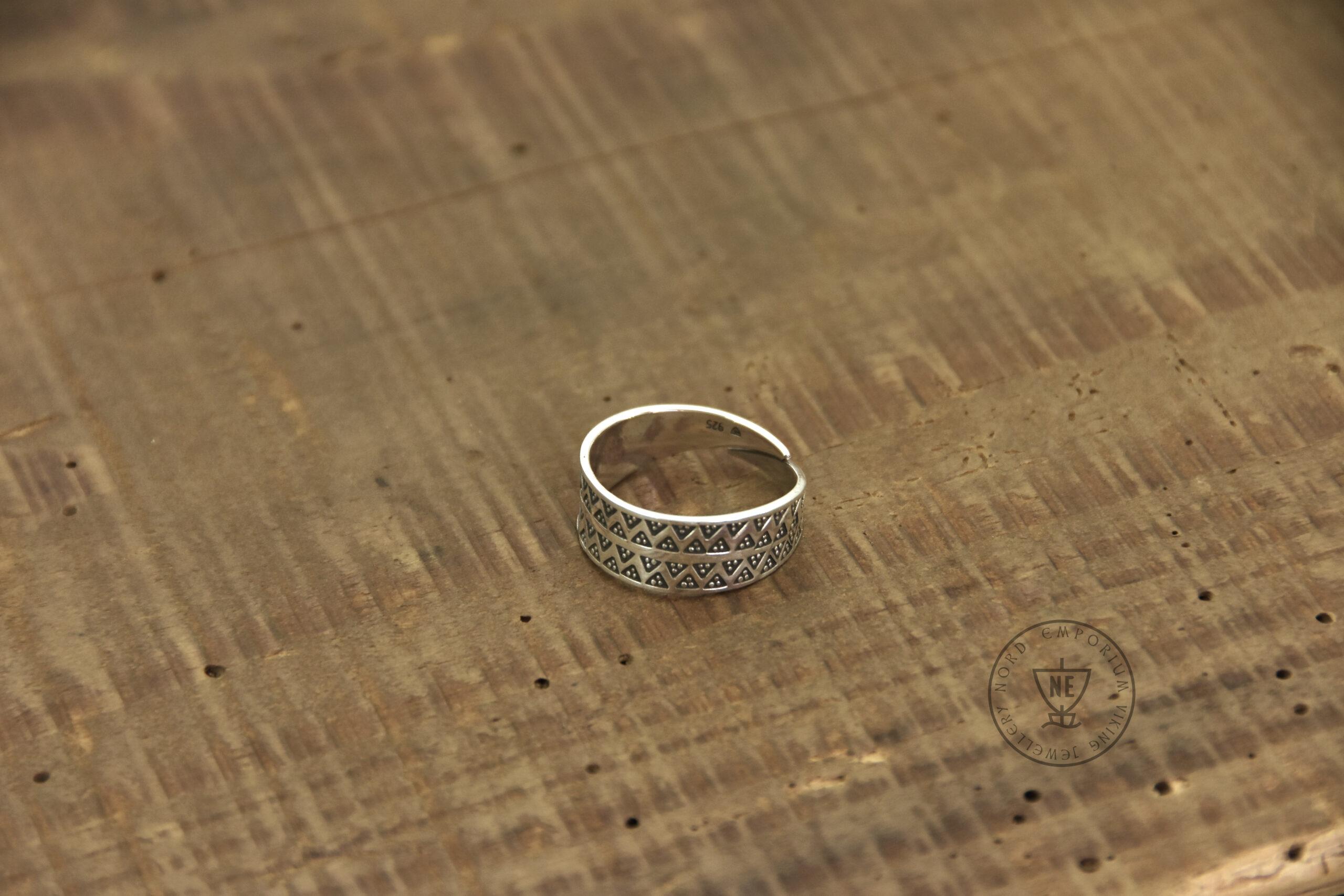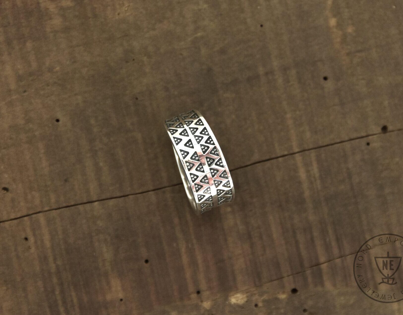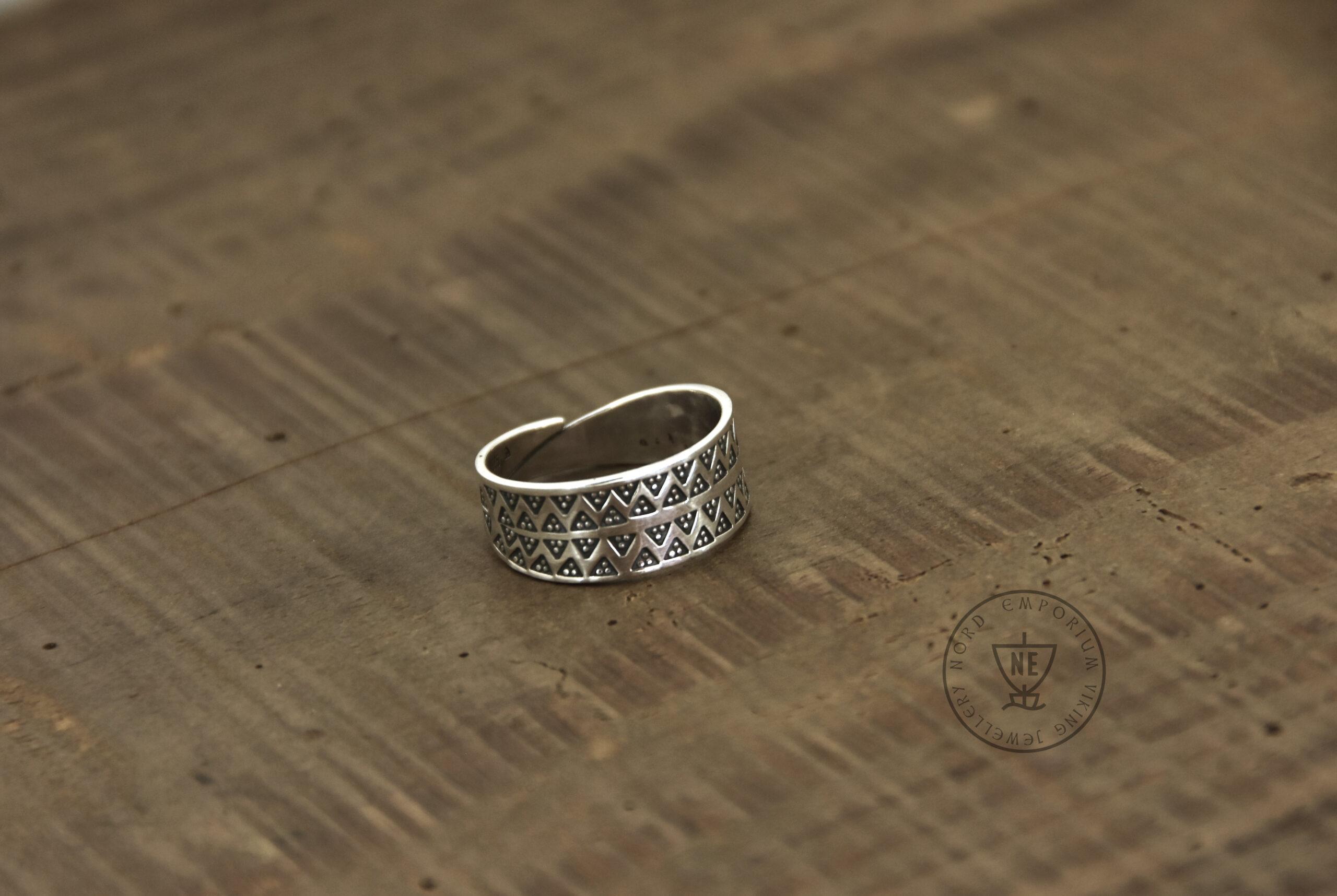 Traditional hand-stamped Viking Ring. Made of Sterling Silver and oxidised in the crevices. The ring is based on a historical find from Truso, Poland.