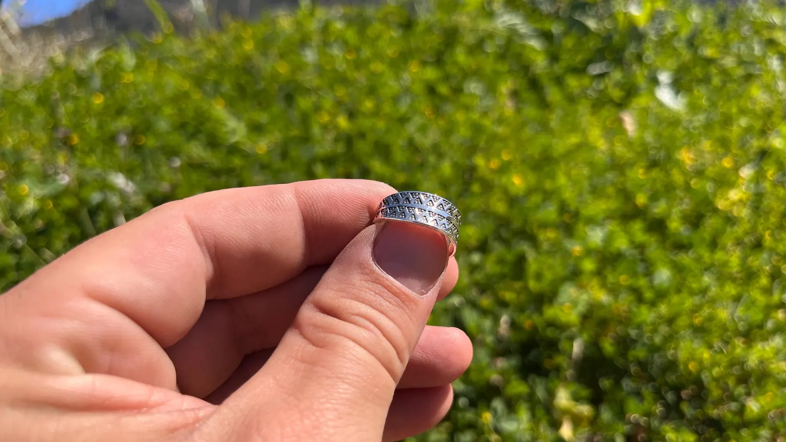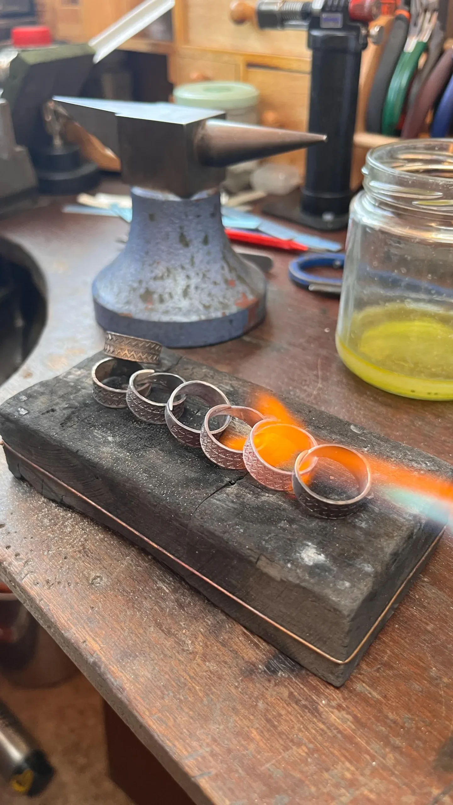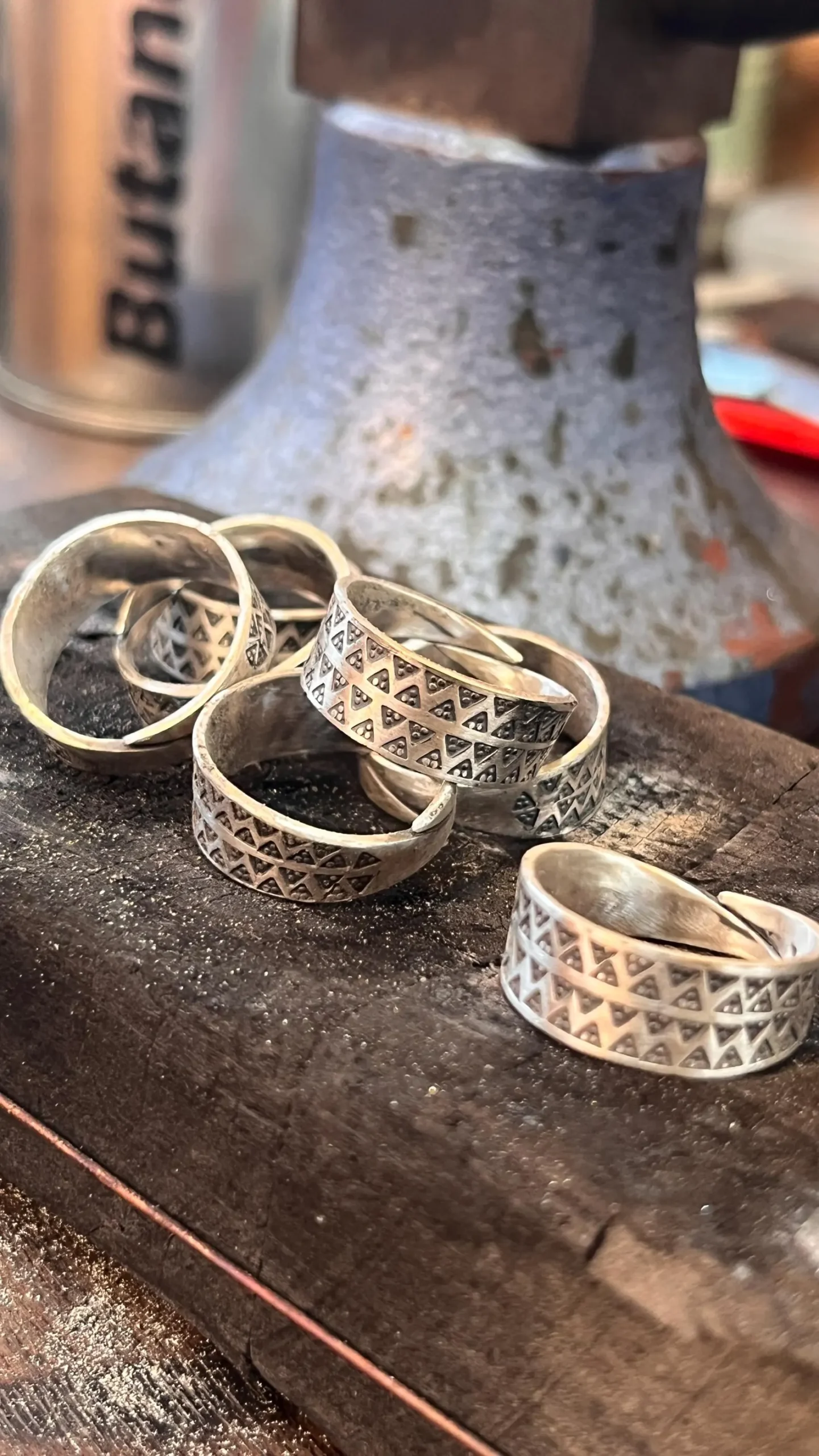 The ring is hand-formed and hand-stamped, and isn’t cast.