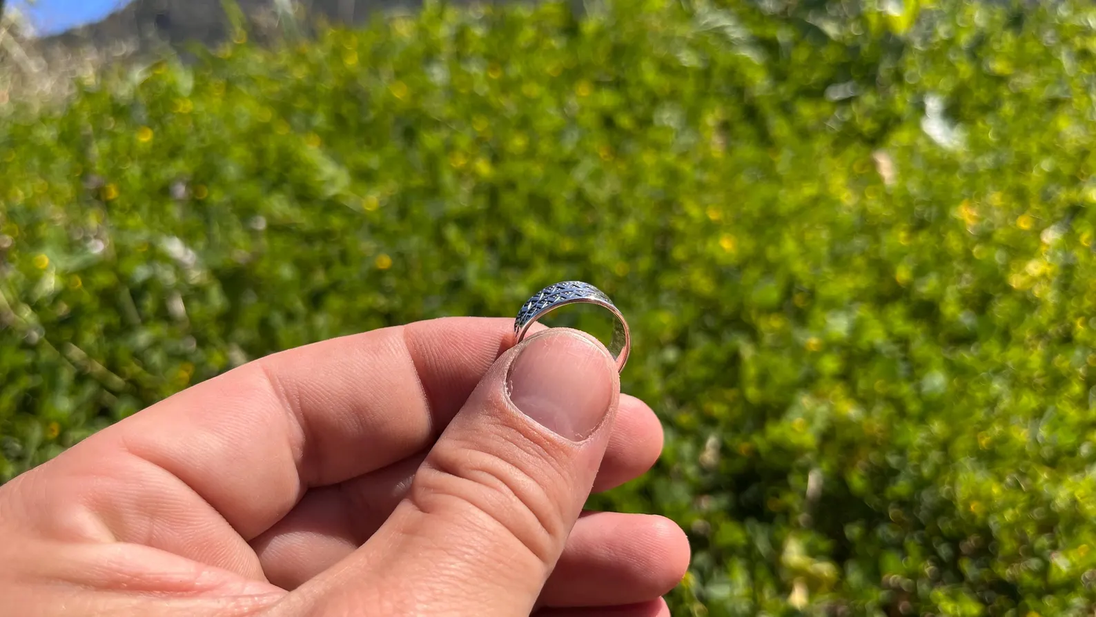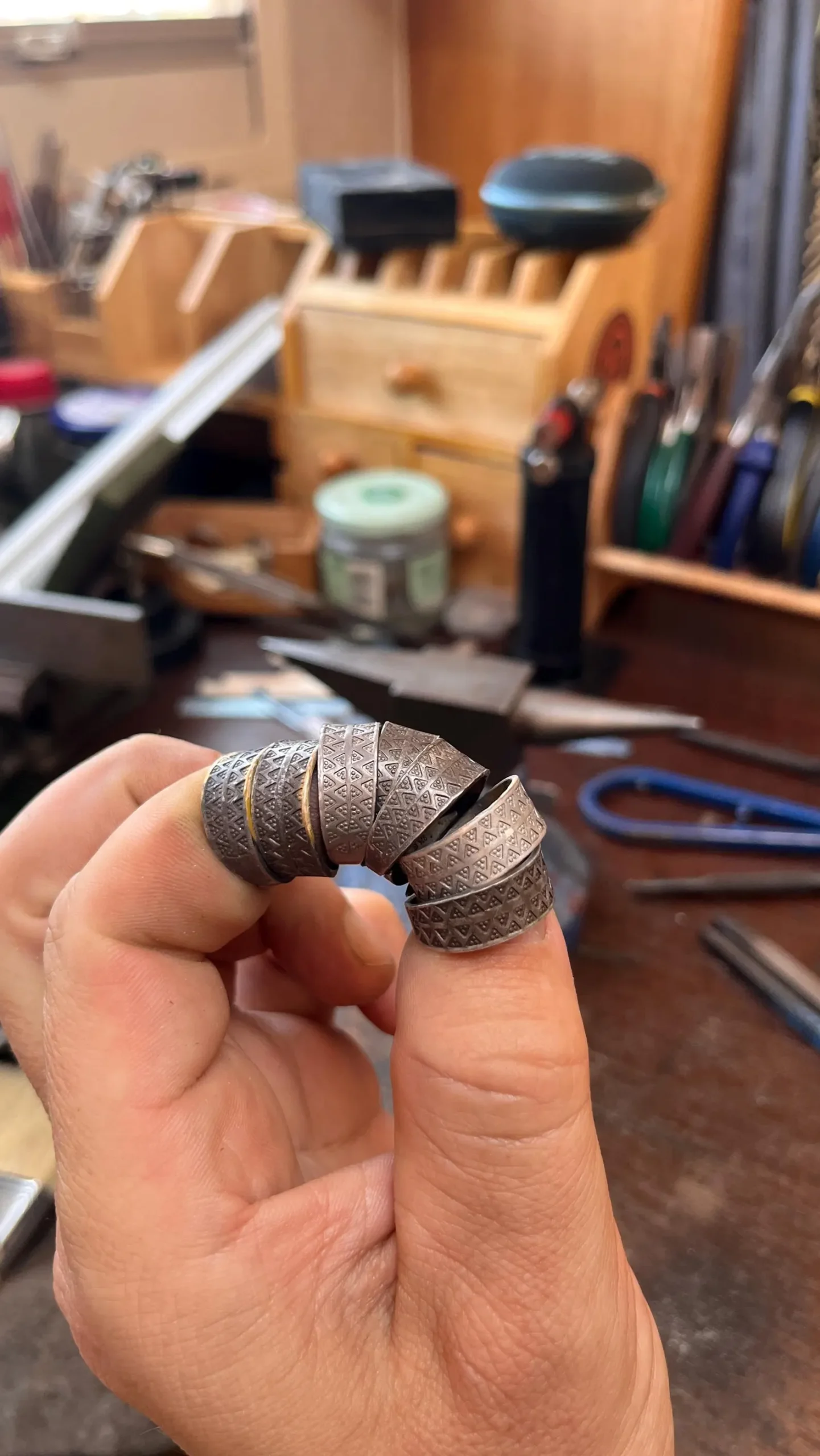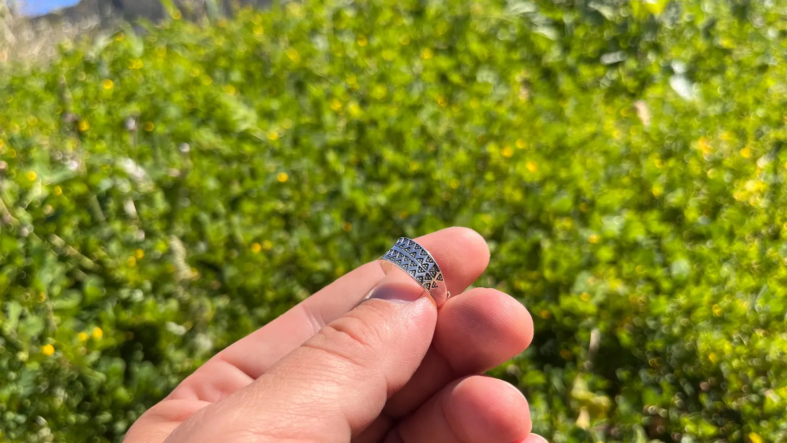The ring is hand-formed and hand-stamped, and isn’t cast.