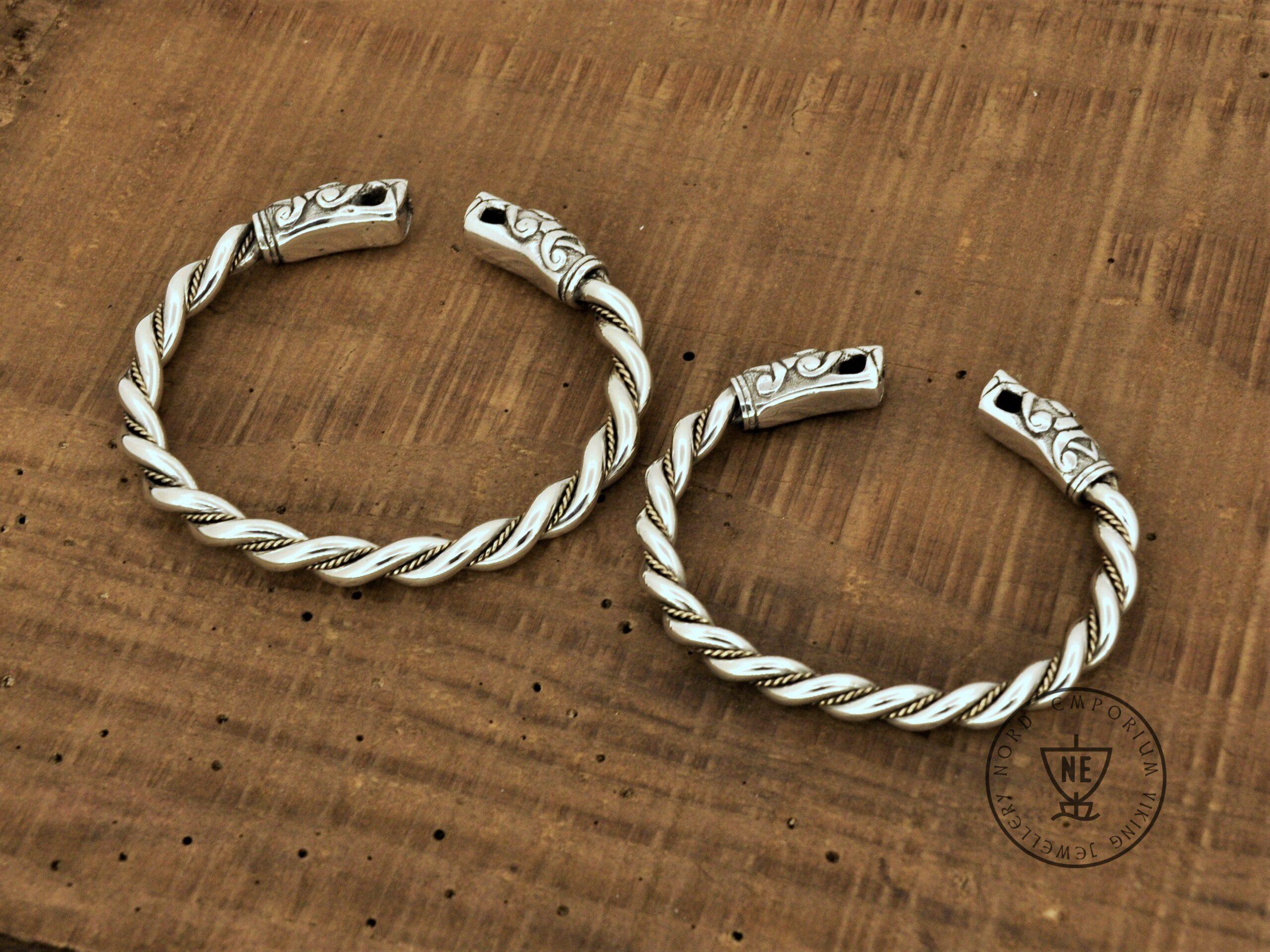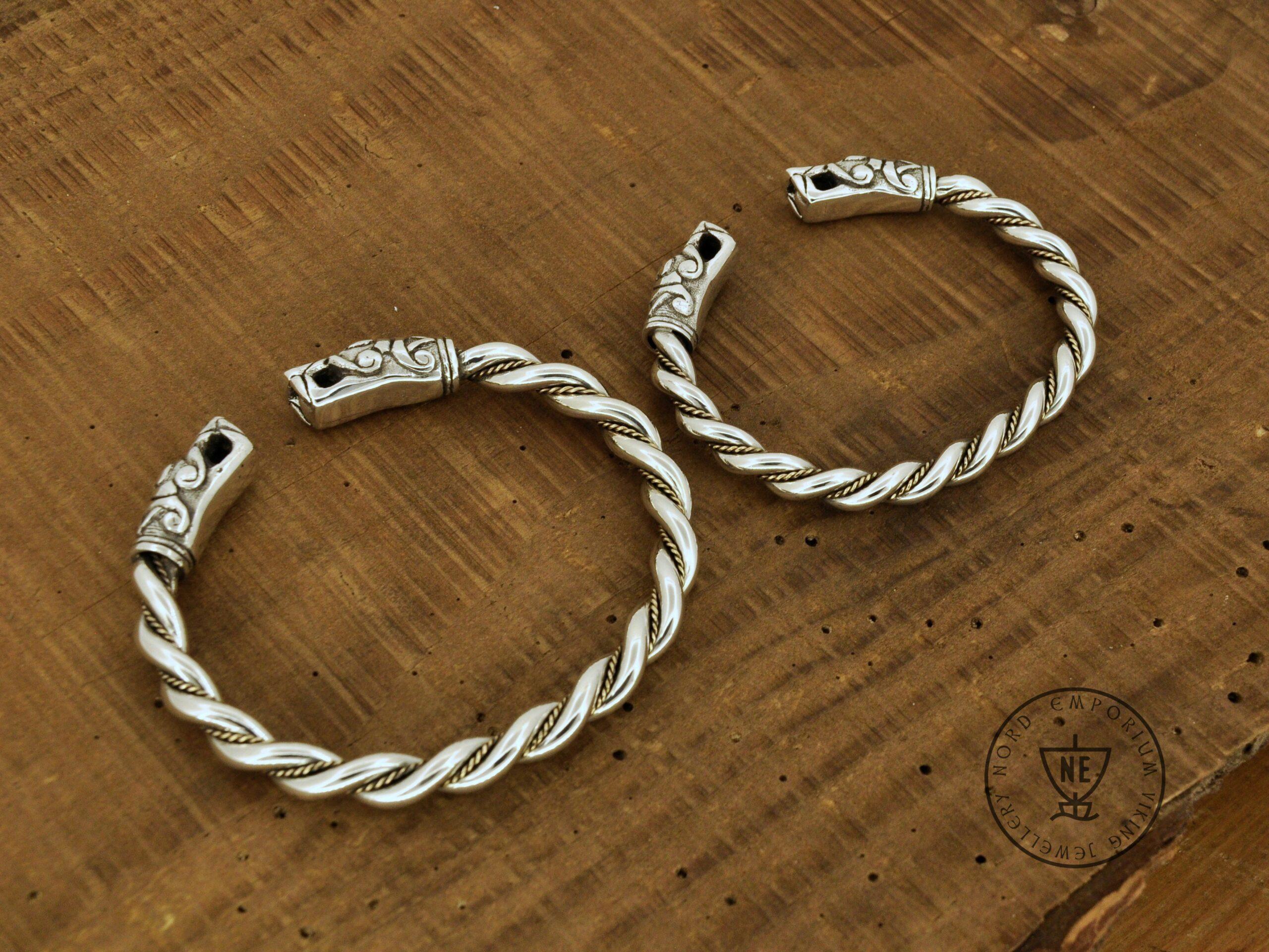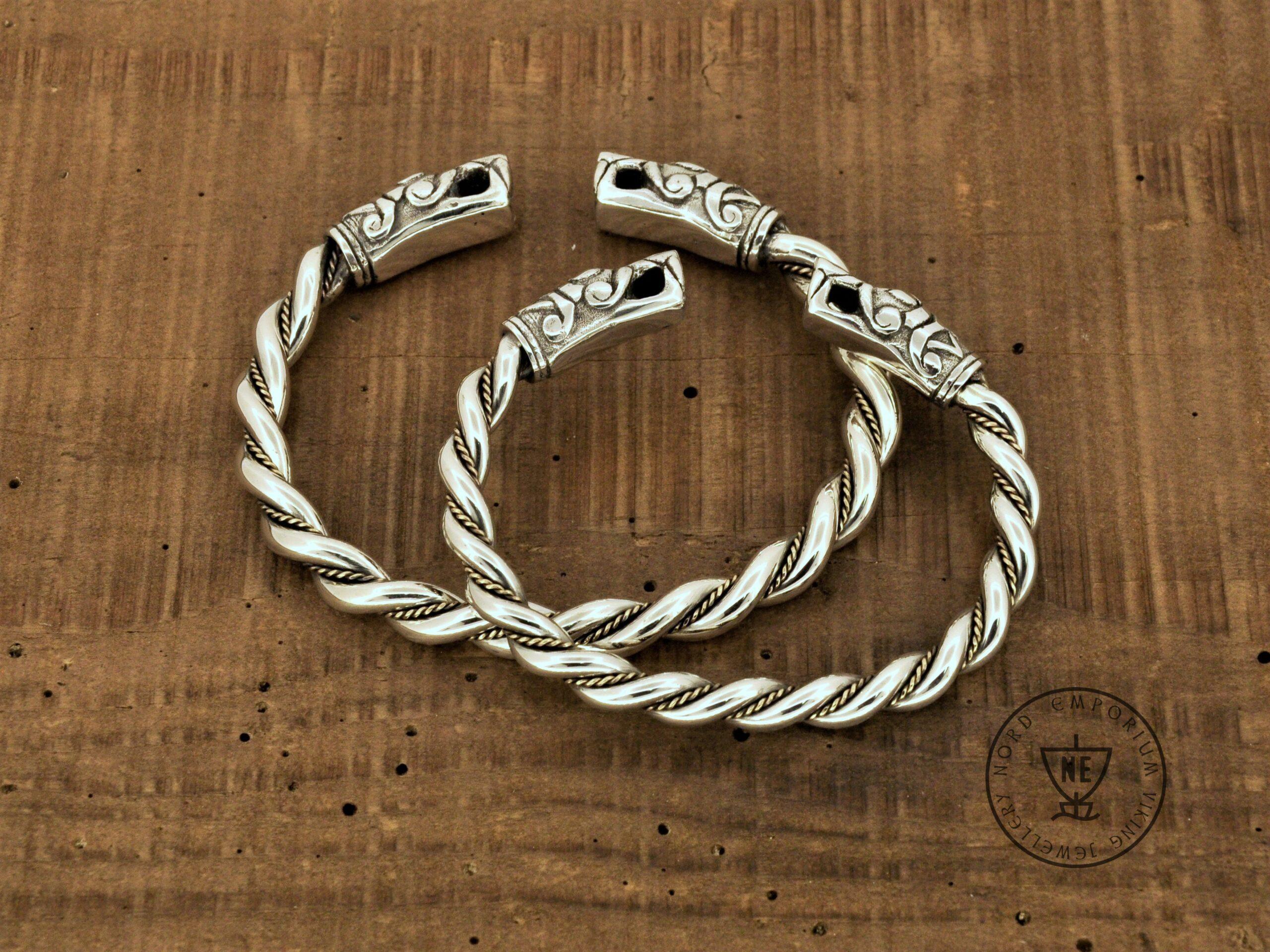 The bracelets are based on historical finds from the Swedish Island of Gotland. The bracelets are made of solid Sterling Silver and Yellow 18K Gold wire twisted accent. These are hand-braided bracelets, not cast.
