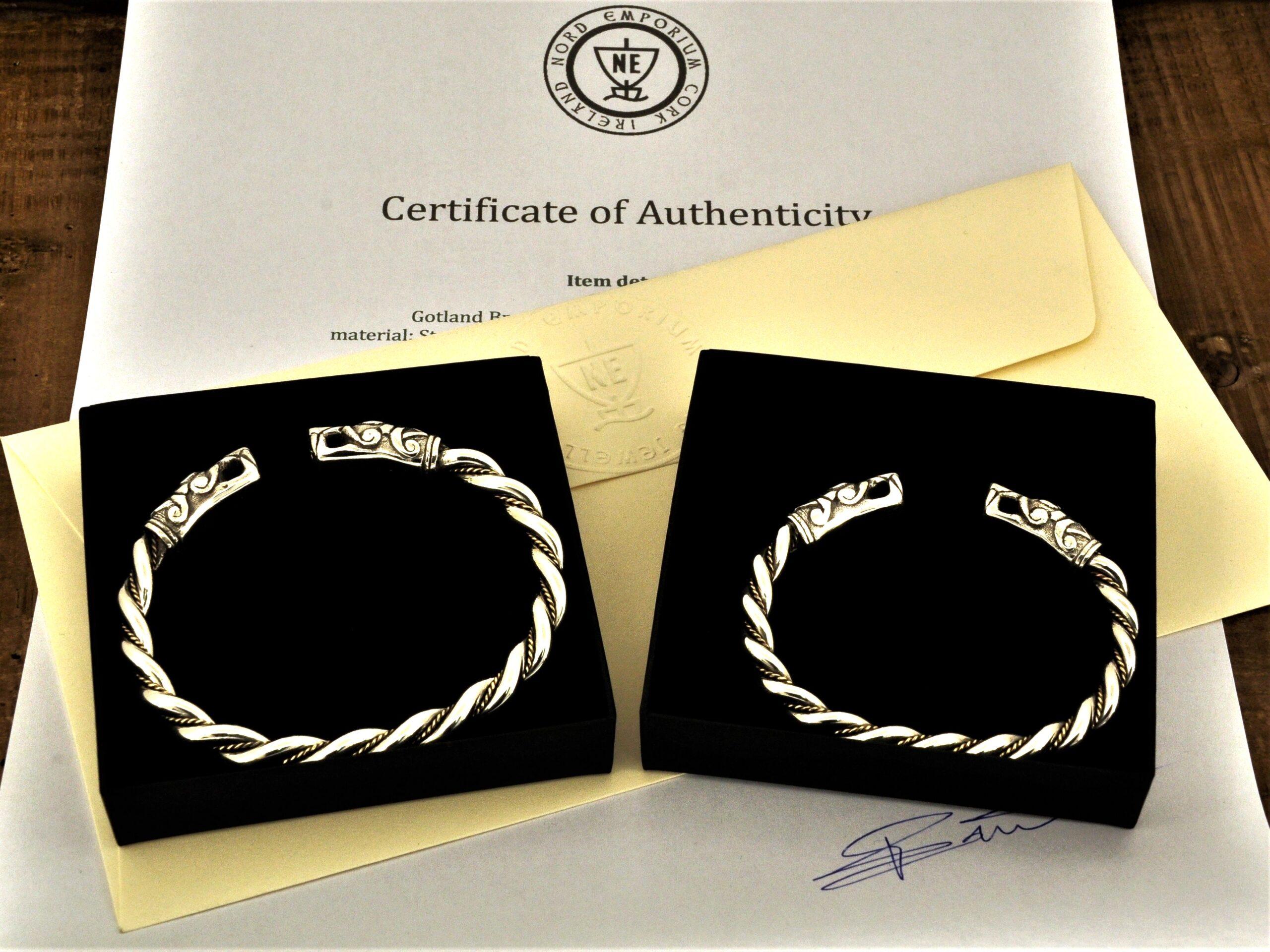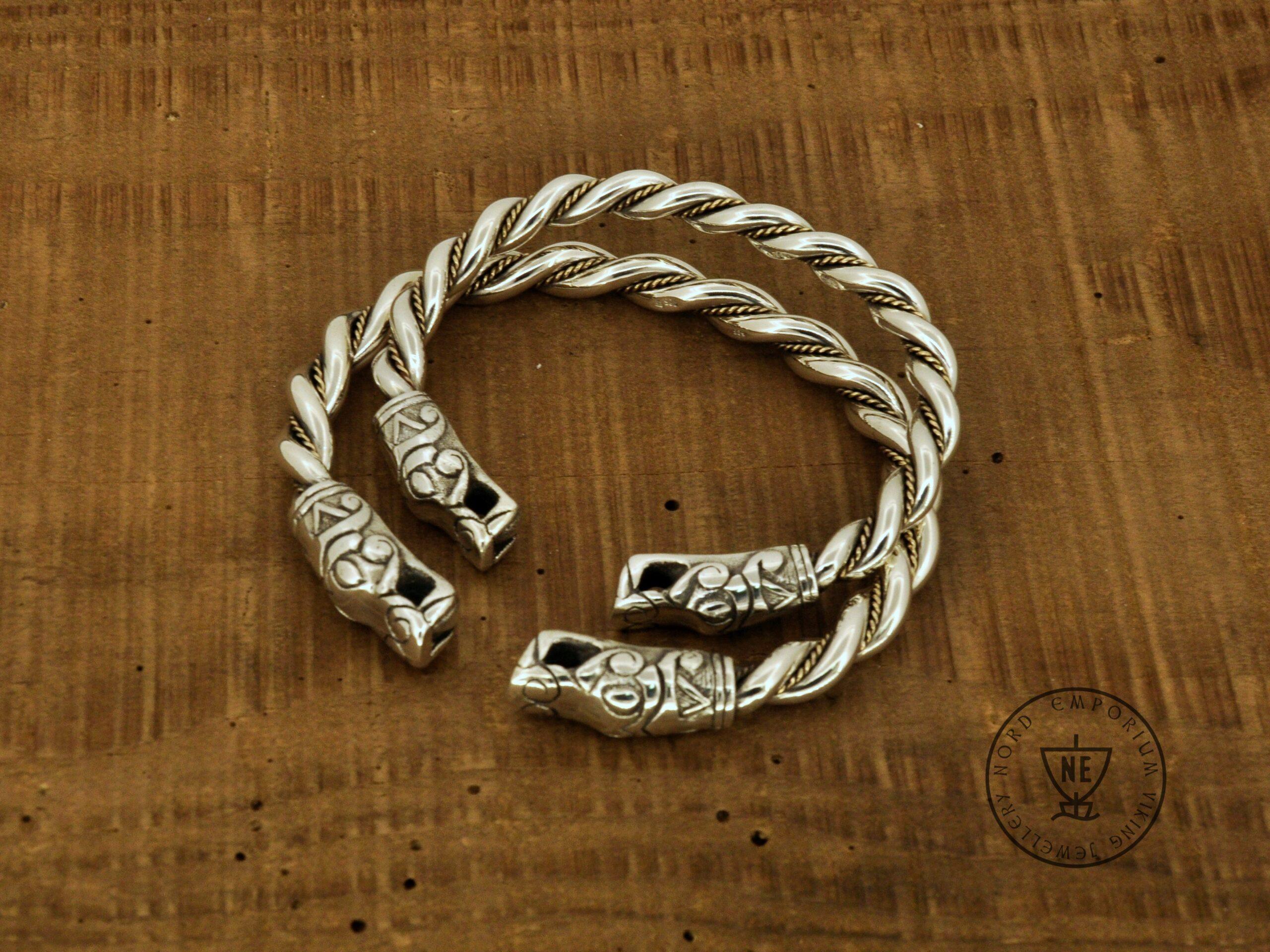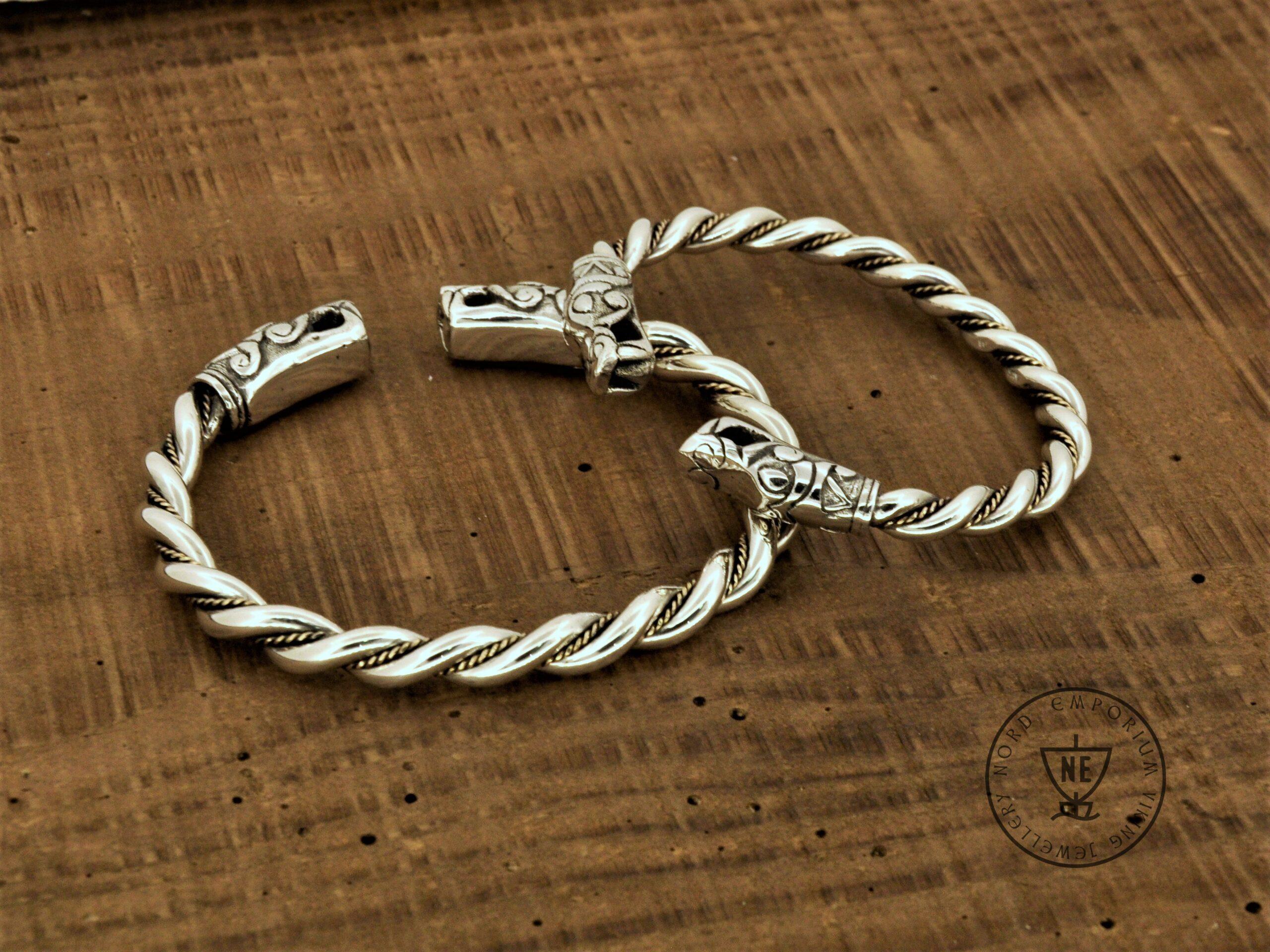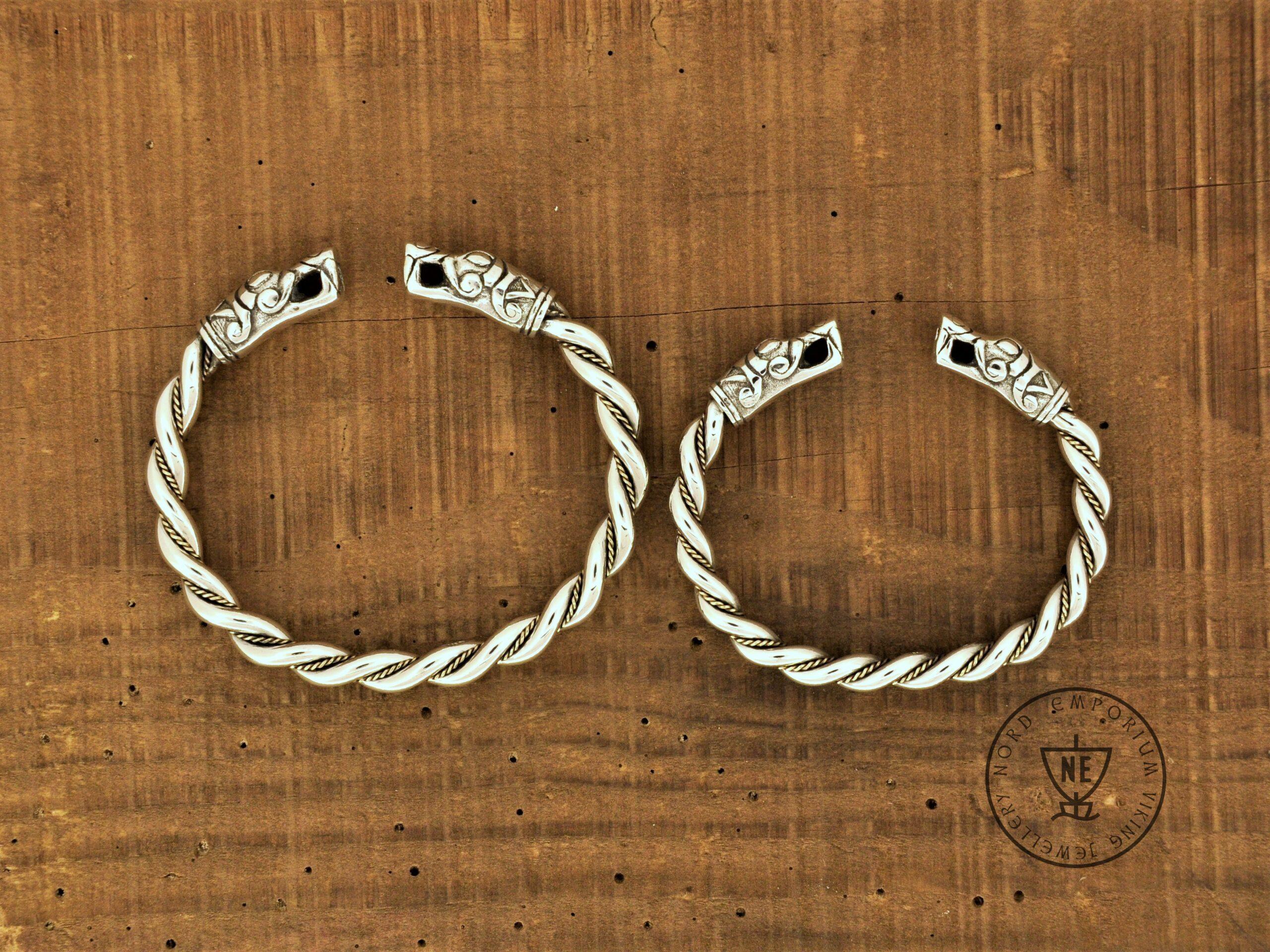 The bracelets are based on historical finds from the Swedish Island of Gotland. The bracelets are made of solid Sterling Silver and Yellow 18K Gold wire twisted accent. These are hand-braided bracelets, not cast.