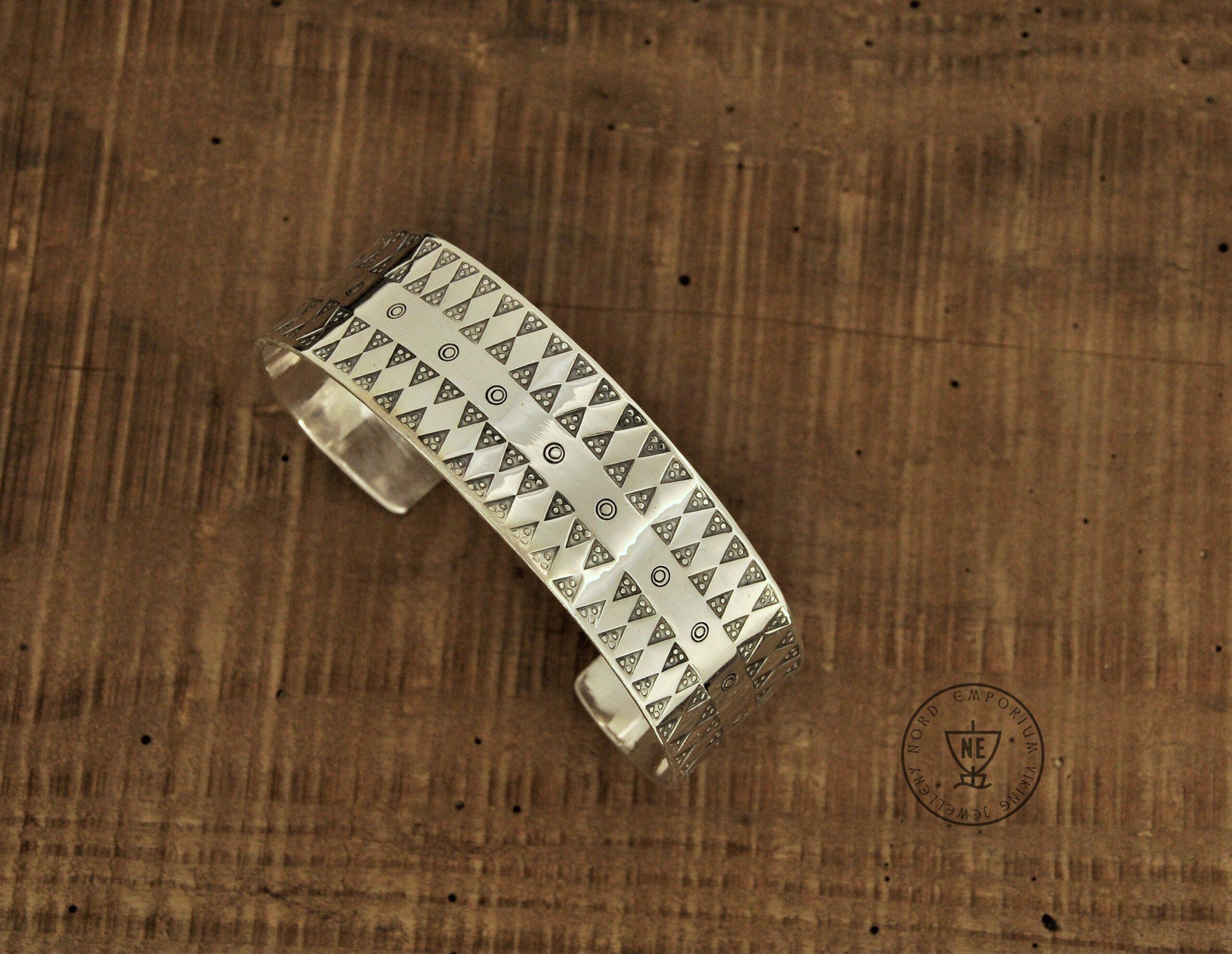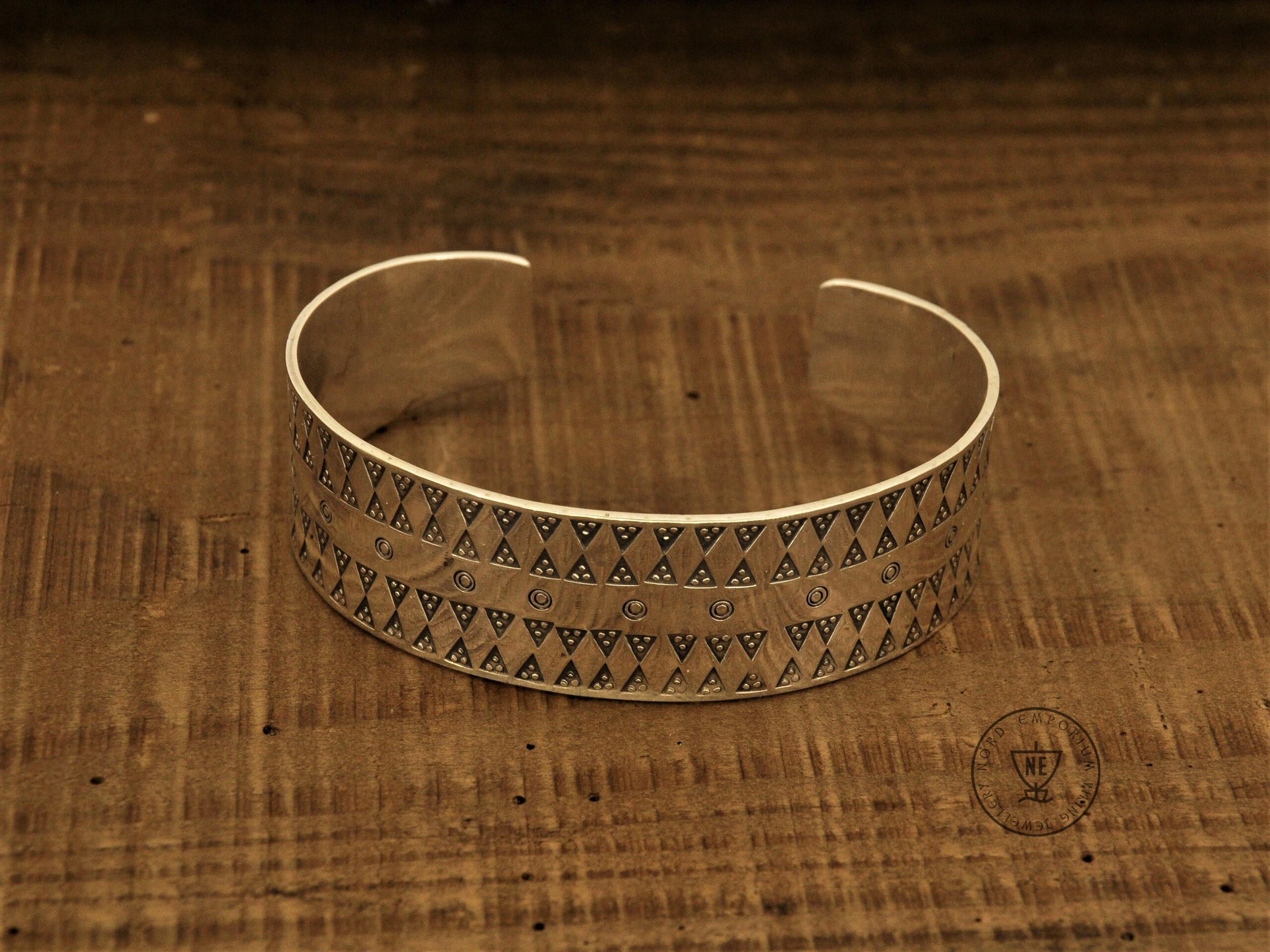 The stamped design is typical of the Viking Age. The bracelet is handmade using punches.
