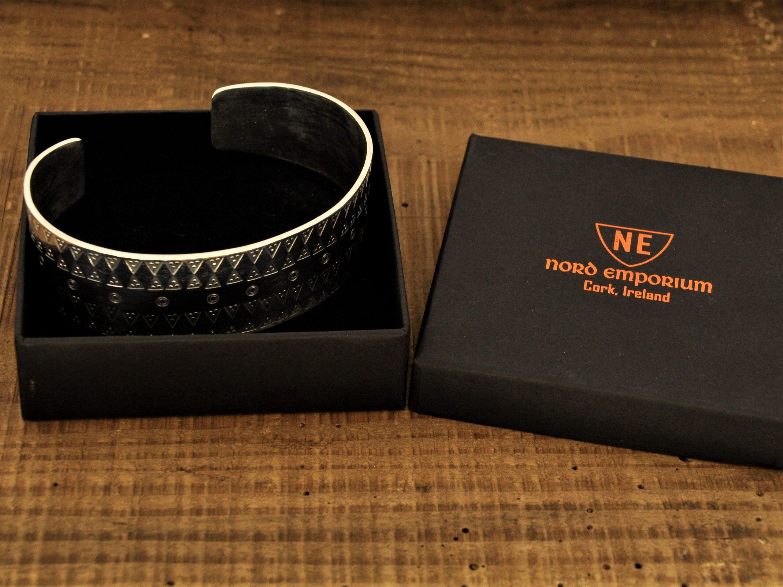 The stamped design was very popular in the Viking Age. The bracelet is hand-stamped, oxidised and high-polished
